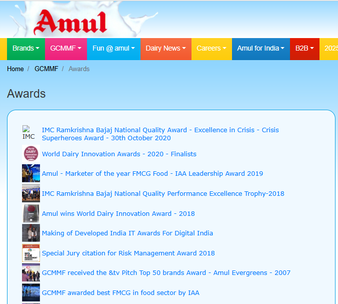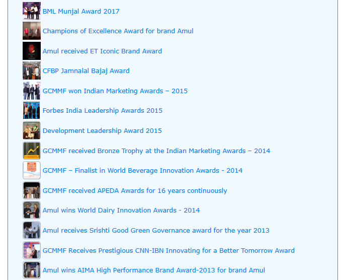- Their are so many awards and certification received by amul as per mention on their site as on date some of listed below and others sharing and others are mentioned in the image