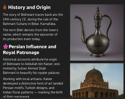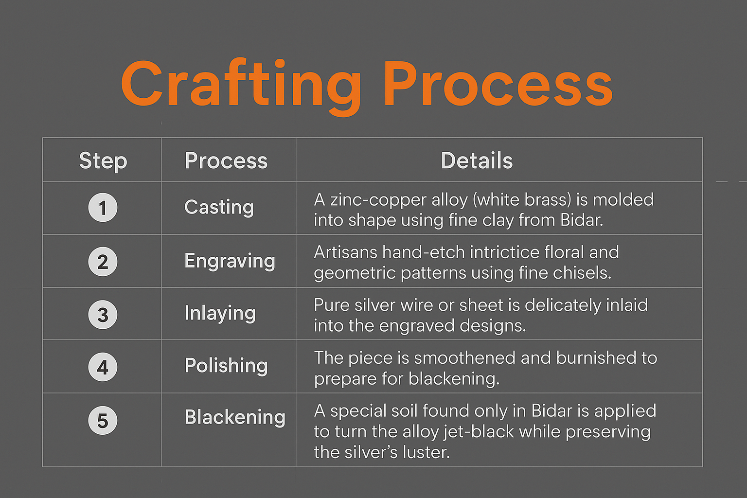 From Deccan palaces to European museums, Bidriware has earned international acclaim for its stunning contrast and craftsmanship.