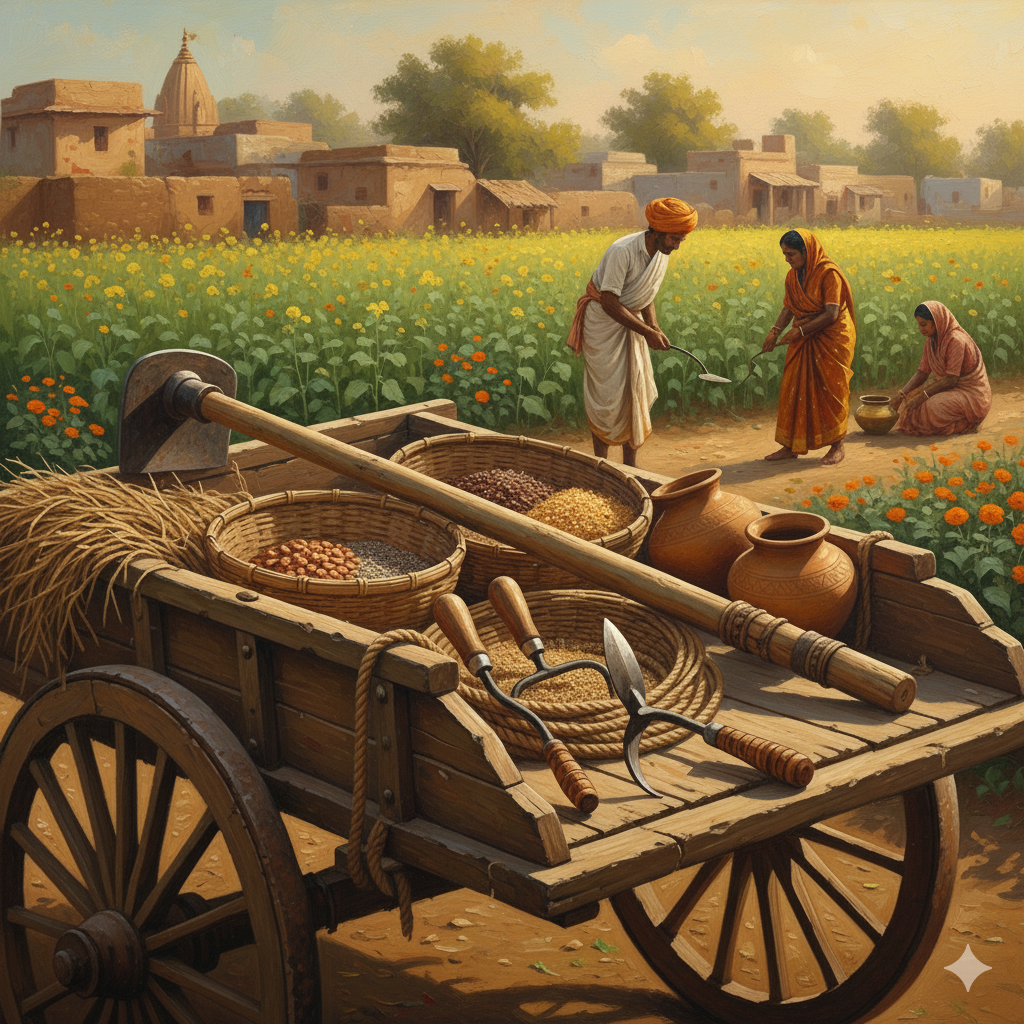 The origins of agriculture in the Indian subcontinent trace back to the Neolithic period, around 8000–6000 BCE, with evidence of early farming practices in regions like Mehrgarh. Over millennia, this evolved into a sophisticated agrarian society, with tools becoming more specialized and region-specific.