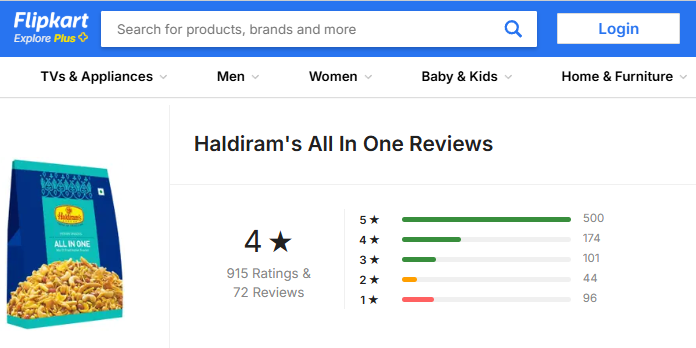 Haldiram’s products are widely praised for their authentic taste, freshness, and variety. Top-rated items like Soan Papdi (4.4★) and Gajak (4.3★) receive positive feedback for quality and packaging.