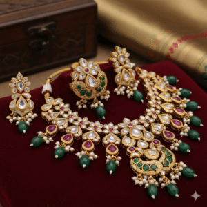 Culturally, Polki is integral to Indian celebrations, particularly weddings. It is a quintessential element of a bride’s trousseau, symbolizing prosperity, blessings, and family traditions. Owning Polki is more than possessing a valuable asset—it is embracing a living piece of history. Passed down through generations, these pieces accumulate stories, sentiment, and significance, cherished as heirlooms for lifetimes.