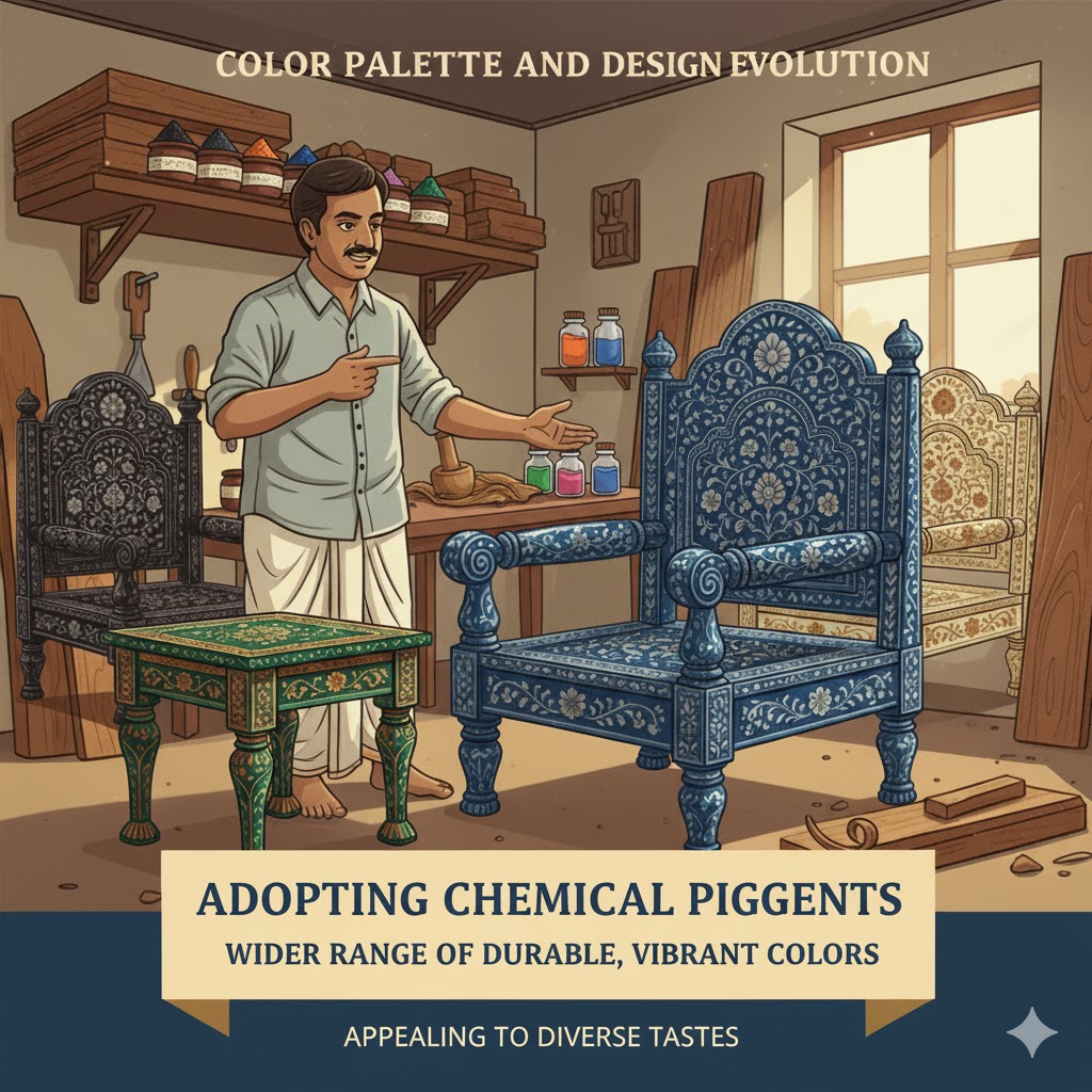 Traditionally, Sankheda furniture was known for its maroon and gold hues, symbolizing prosperity and festivity. However, with modern innovation, artisans now experiment with black, blue, green, ivory, copper, silver, and burgundy shades, expanding the craft’s appeal across diverse tastes and global markets.