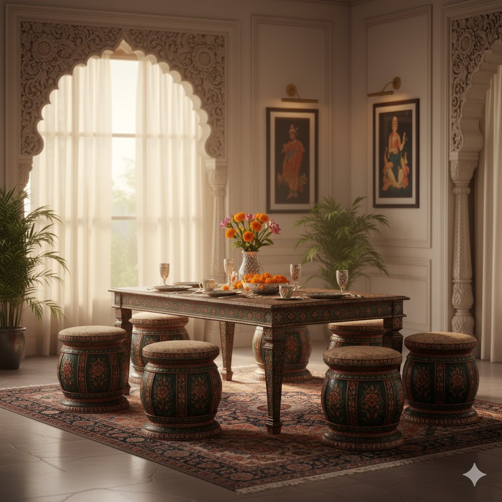 • Dining Tables and Stools – Merging tradition with contemporary use.